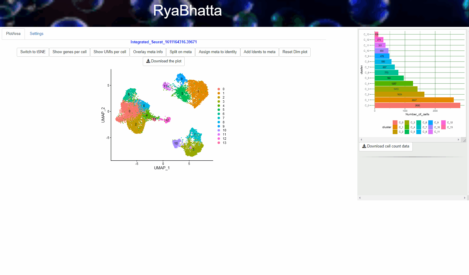 The Download the cell count data button can be used to download the cell count per cluster split on the chosen meta data category.