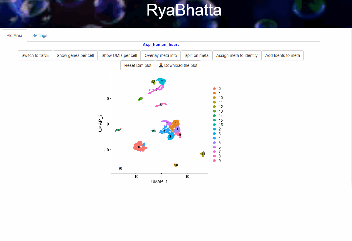 select the format top Dim plot to create a list of current colors used in the top dimensionality reduction plot. From here select color for the different clusters.