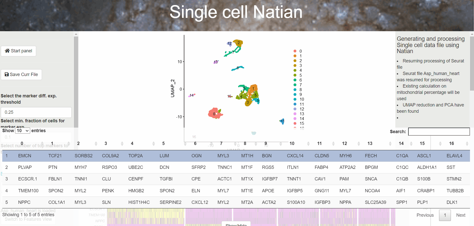 Once clustering is performed, it is possible to identify genes that display a strong bias in their expression towards a specific cluster. In otherwords, these genes serve as characteristic markers of the clusters. In Natian this can be achieved by selecting parameters for finding markers genes.